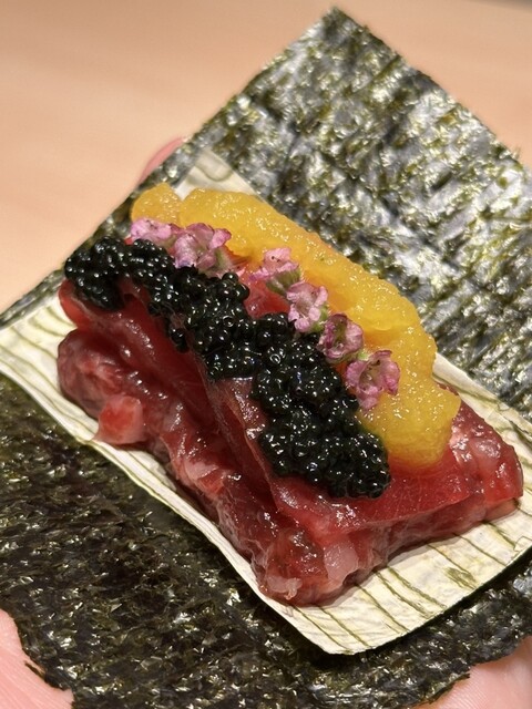 鮪と和牛の相性抜群でいくつでも食べられそ