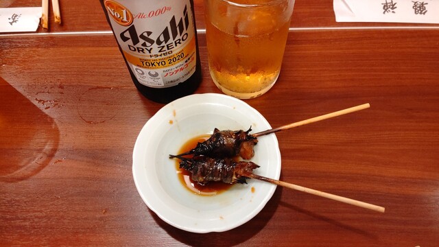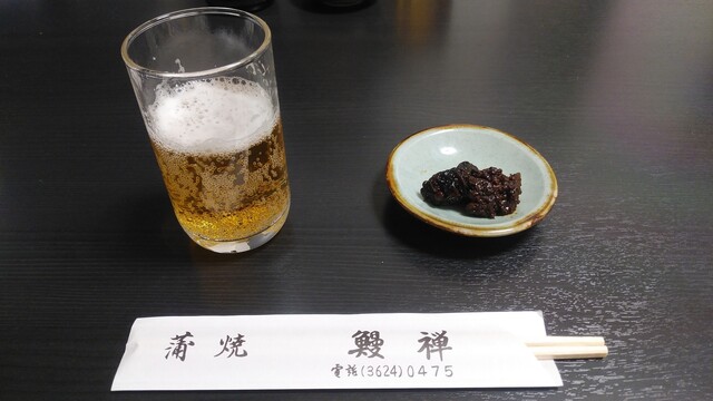 鰻の頭と肝の山椒煮です。これがビールの肴にでてきます。無料が信じられません