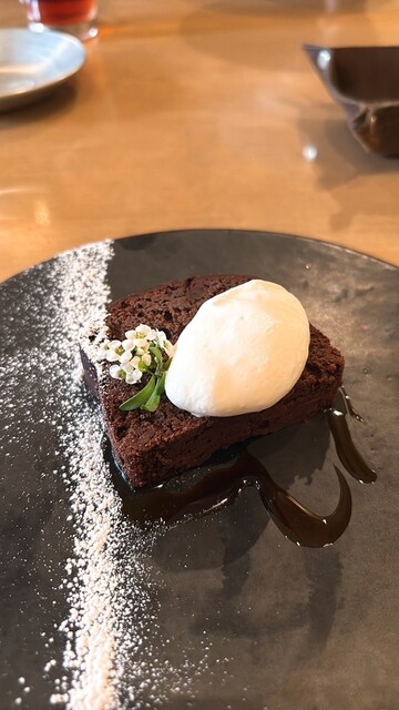 カシスの酸味があることで、あれだけボリューミーなメインの後でもぺろっと食べられてしまいます。牛蒡のガトーショコラは甘さ控えめで、牛蒡の食感と香ばしさがカカオとこれほどマッチするとは驚きでした。