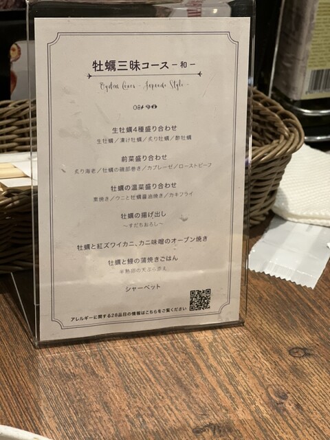 牡蠣三昧コース、カジュアルコースも予約したことがあります