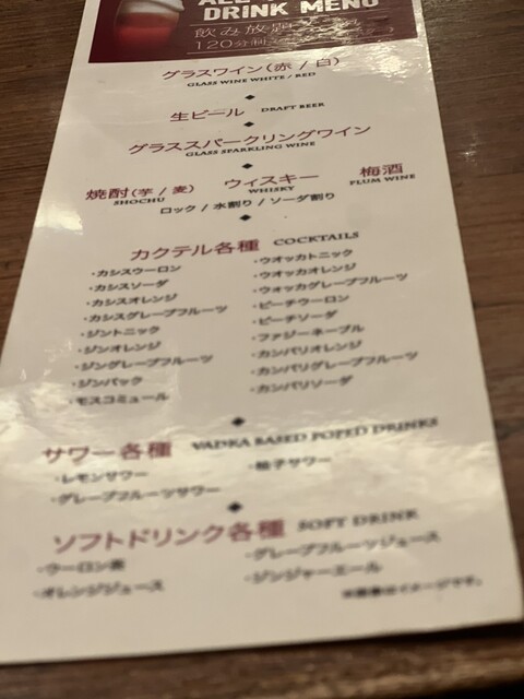 120分制は構いませんが最初のおかわりの飲み物が、10分以上経ってもなかなか来なかったこと