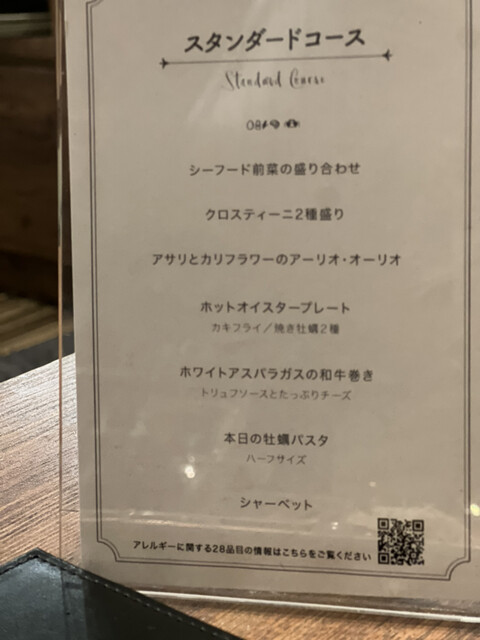 牡蠣三昧コースがいちばん牡蠣がたっぷりと食べられるのですが(いちばんお得でボリューミーです)お腹いっぱいで他のものを頼めなくなるのでカジュアルorスタンダードでオイスタープレートなどを追加する方法がお勧めです、色々なものが頼めます