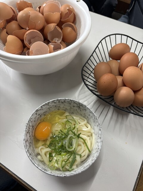 熱いうどんと卵