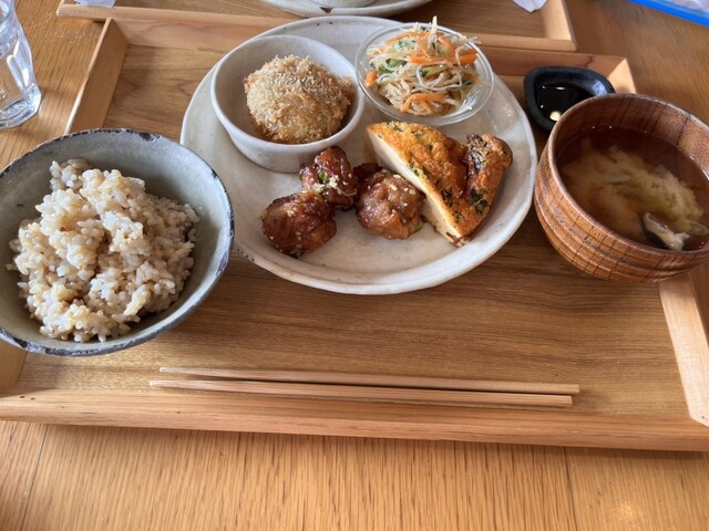 オーダーしたのは、おかずがズラリ並んでいて4品選ぶのとご飯とお味噌汁にドリンク付きでした。