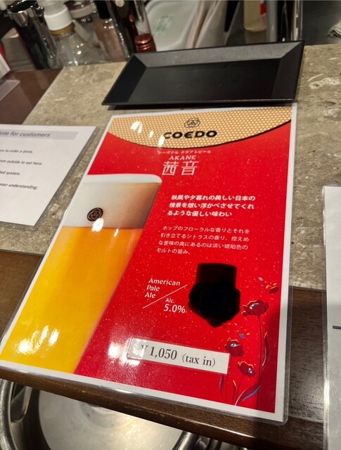 飲み始めてちょうど陽が落ちてライトが目立つ少しの滞在時間をとても有意義に過ごせました。