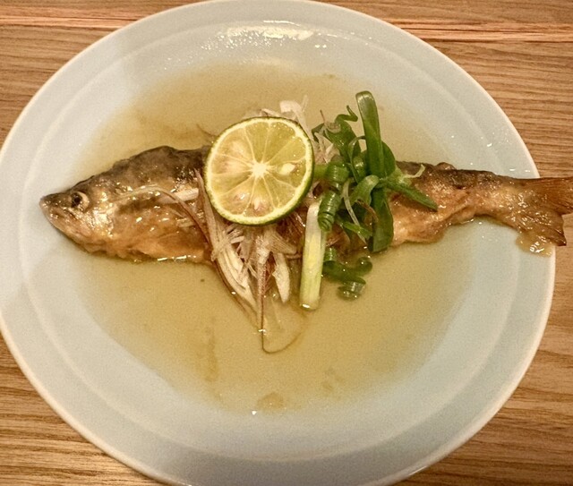 天魚と書いてあまごと読みます。川魚とのことですが、食べるのは初めてかもしれません。初めて食べる味わいでしたが、出汁がとにかく美味しい!骨まで柔らかく、頭も尻尾も味わえました。想像の斜め上をいく美味しさでした。