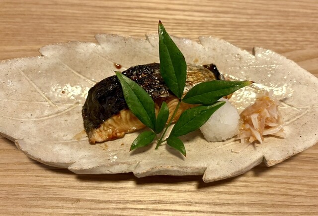 焼き物は鰆のタレ焼きでした。これまた絶品です!鰆も美味しいし、味付けも優しい味わいながら旨味がしっかりしています。付け合わせの梅水晶も嬉しいですね。