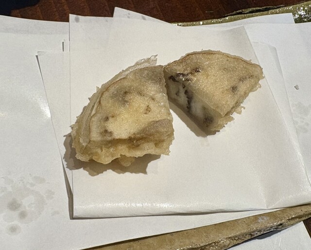 どれも物凄く美味しいです。しいたけはお肉かと思うほどジューシー。万願寺唐辛子は本当に甘くて驚きました。鯛はわさびと塩で頂きましたが、かなりレベル高いです。白ナスはとびっきり甘く、人参も何もつけなくても甘くて美味しい。ハモはシソ巻きで丁寧な仕事、塩でも天つゆでも美味しい。どれも素晴らしいです。