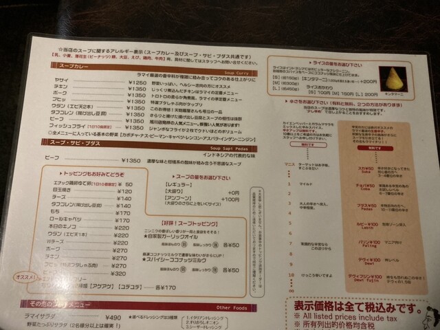 最新の情報とは異なる可能性がありますので、お店の方にご確認ください。詳しくはこちら