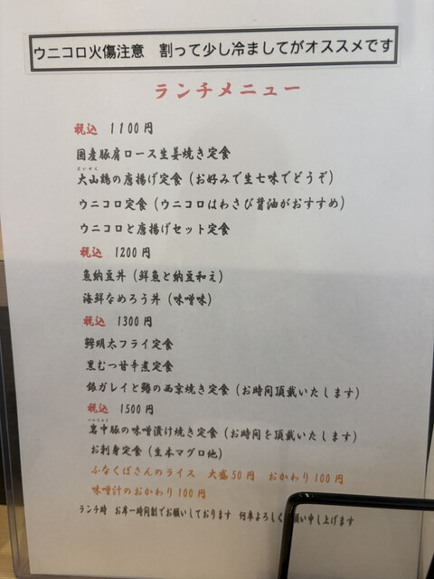 火曜日の13時過ぎに訪問で入りは5割程で待たずに入店。旬の牡蠣フライ定食(1300円)をオーダー