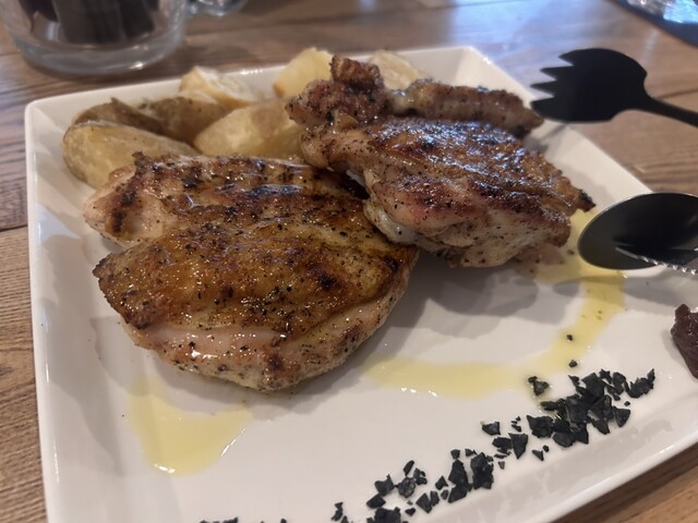 1番のお気に入りは、人気メニューという鶏の炭火焼き。注文してから炭火を温めてじっくりとグリルされた鶏肉はとってもジューシー。