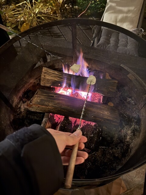 食後に薪火に移動してマシュマロを焼いて食べるのも家族とゆっくり話ができて楽しかったです。