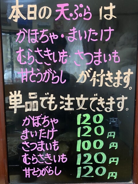 天ぷらは舞茸、南瓜、さつま芋、甘唐辛子、茄子