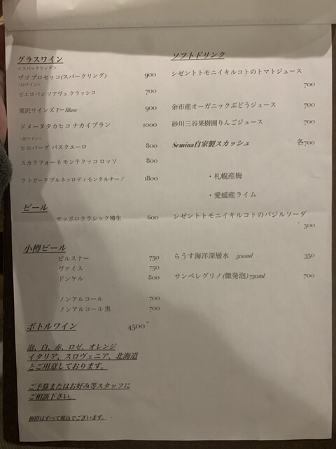 北海道に来たので晩ご飯は「セミーナ」さんへ
