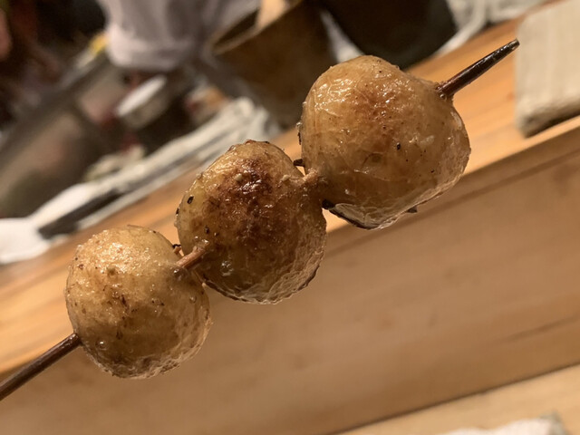 とても柔らかく火が通ってる、味は普通で串から外れやすいので注意してください。