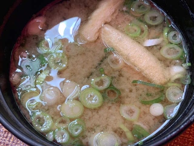 お味噌ネギ、わかめ、油揚げの白味噌でシンプルですがこちらも普通に美味しいです。