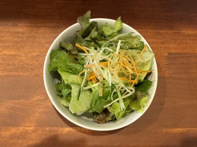 ランチは基本的にメインの品を選びサラダ、1口カレー、お味噌汁、ご飯がセットでサラダ以外はおかわり1回まで可能。