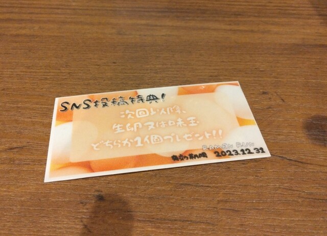 また、♡サービスの出汁割(魚介系の優しいお出汁)で@590の豚骨ラーメンに、