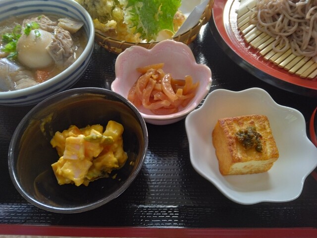 大きなお盆の右側、しっかりと締められたお蕎麦に、薬味柚子も添えられて嬉しい、美味しい♬