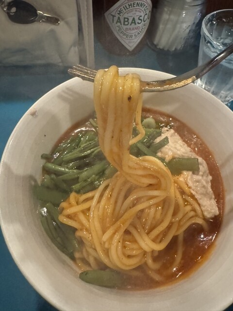 金曜ランチは山菜とツナマヨのあんかけパスタ