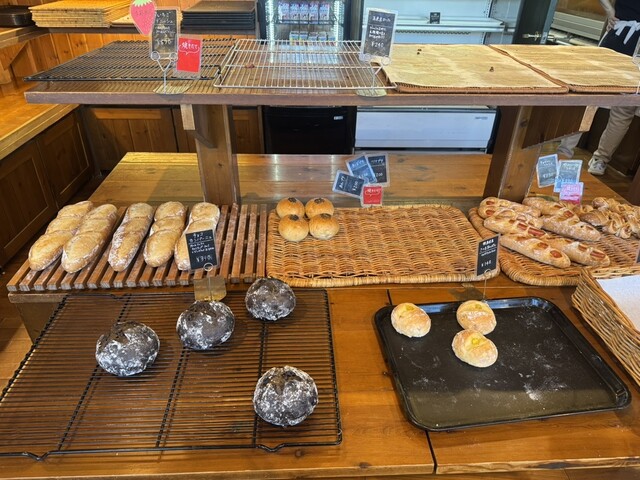 店内で待っている間に焼きたてパンが続々店頭に並びます。
