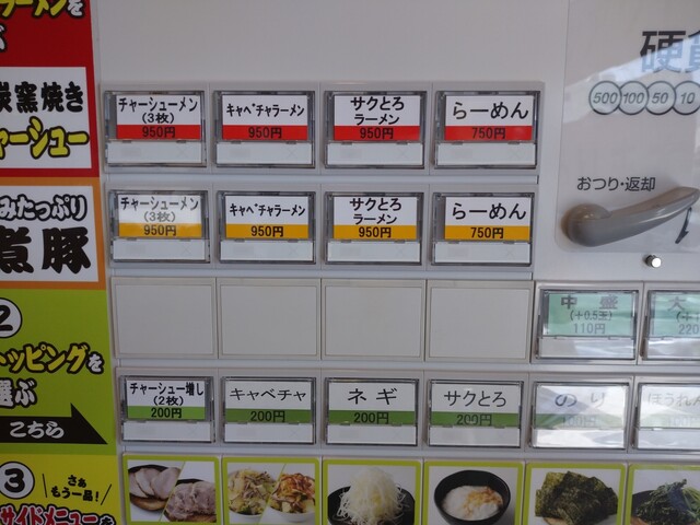到着は12時頃。家系にありがちな食券制。最近「家系の塩が食べたいな」と思い始めてますがこちらはなし。その代わりチャーシューが燻製か?煮豚か?選べる模様。どちらも750円。
