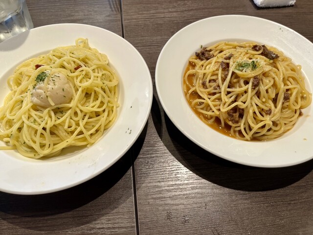 黒毛和牛のミートソースのセット(1,200円)とペペロンチーノのセット(900円)をいただきました。