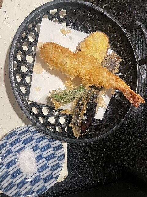 前菜、お造り、焼き物、天ぷら、酢の物と出て仕上げは蕎麦でした。