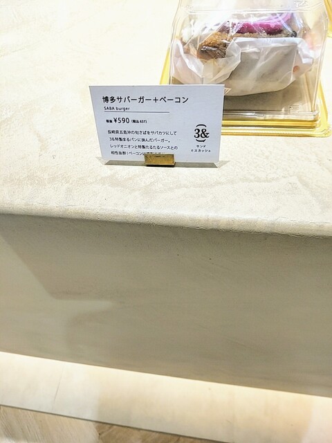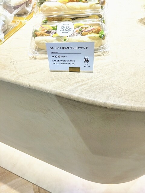 「Liella!」ではなく「VIERRA」の3階にある竹乃屋グループのサンドウィッチ屋さん「3&(サンド)」で、3&っぐの博多サバレモンサンドと博多サバーガーのベーコン入りを買いました。