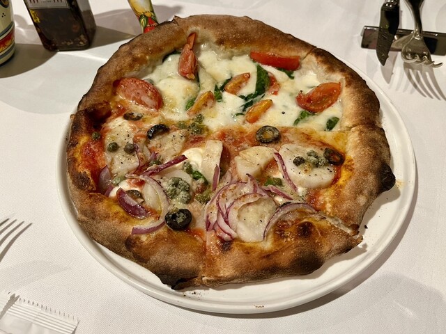 ピザまじでうまい。耳がうまい。ホタテとオリーブと紫玉ねぎはつまみとして絶妙。マルゲリータビアンカは完璧がすぎる。まじでうまい。