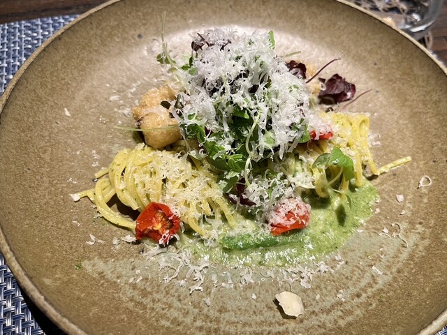 朝ごはんを食べたばかりだったので、お料理はパスタの単品を頼んだところ、これが絶品。