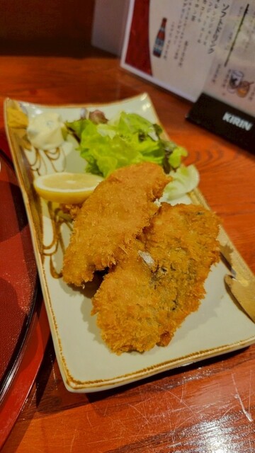 お昼の定食はアジフライか煮魚かを選択するシステムで前者にしていただきました。