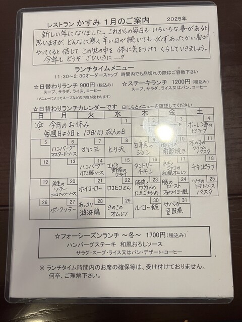 もちろん、日替わりランチ以外にもメニューがあり、ステーキランチなどもお手頃価格。