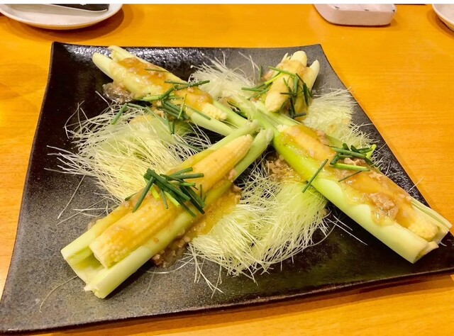 ✅お通し(マコモダケの鮪出汁餡掛け)