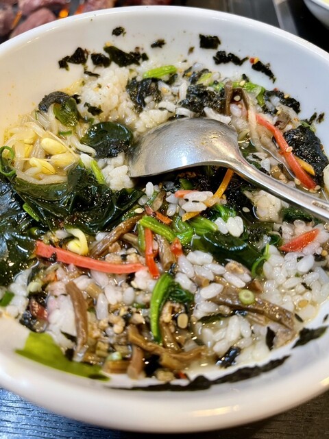 焼いてる途中でピビンバ(小)がきたのでハラミを食べながらピビンバもいただきました。