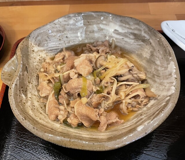 あらかじめチェックした今日のおすすめから、「刺身二点盛り」と「牛バラ肉てきのこのうま煮」を注文。