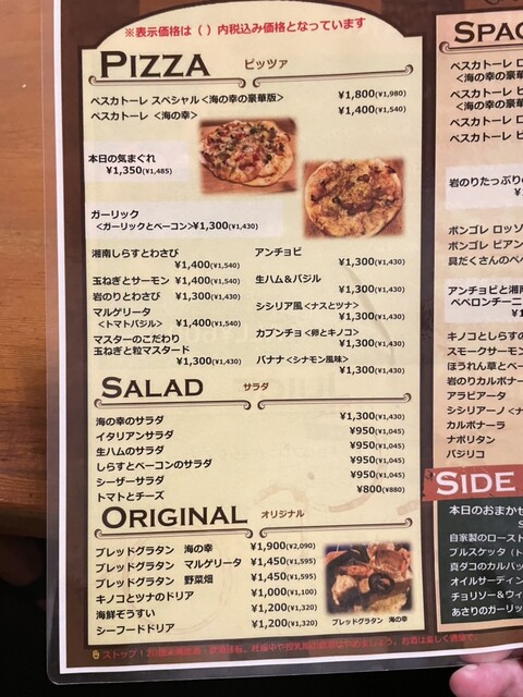写真付きで紹介されているのは「岩のりたっぷりビアンコ」と「アンチョビと湘南しらすのペペロンチーニ」の2つ。