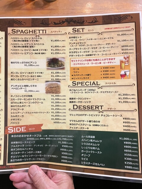 ピザもスパゲッティも美味しそうなのだけど、1人なのでスパゲッティから選ぼう。