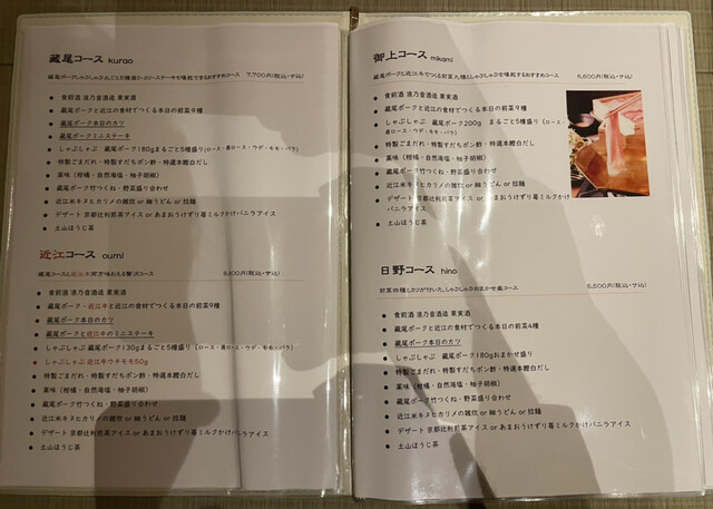 予約時に2人とも少食だと伝えると、しゃぶしゃぶコースの梅をおススメされた。
