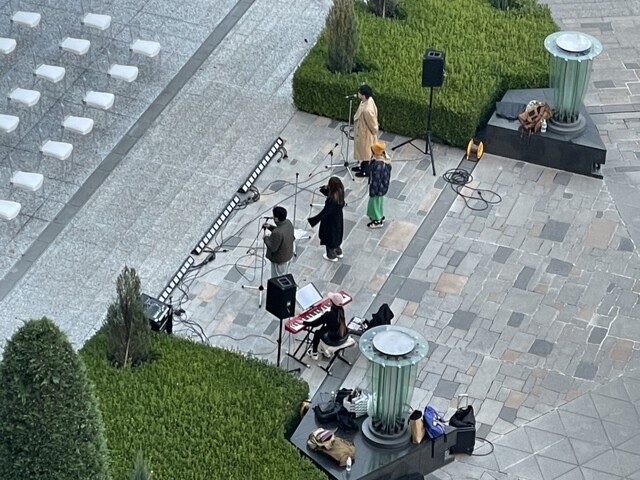 中庭で、生演奏をしていた。メチャ上手い!