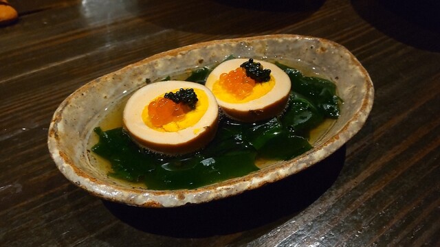 玉子…乗っているのはキャビアといくら。下側に敷かれているワカメもダシを吸って非常にいい仕事をしている。