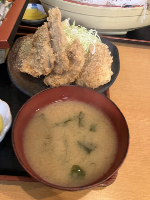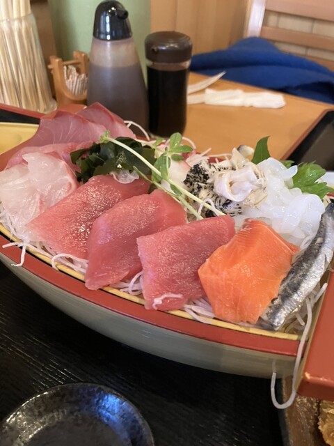 事前に調べていて一番惹かれたのが舟盛りの刺身。メニューを見ると、はまぐりと揚げ物のセットがあり、迷わずそちらを注文。