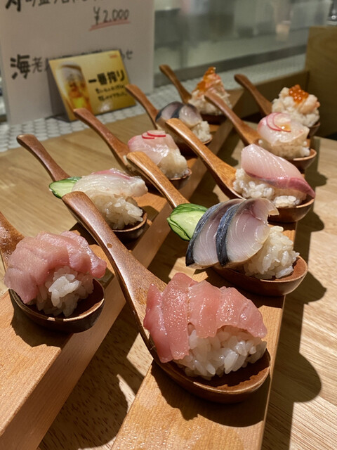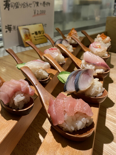 映えてるのにとっても美味しかったお寿司の盛り合わせはスプーンにのったスタイル