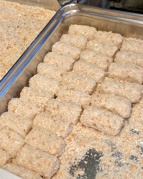 今週のコロッケと書かれた鮭の西京コロッケ♪