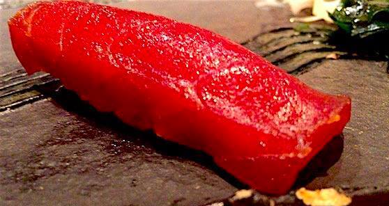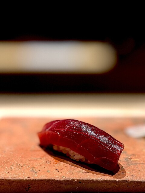 赤身。 築地の樋長さんが落としたどっかのまぐろ。 10日熟成。 いい感じに酸味が立ってます。