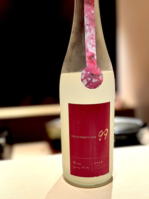 おまかせ#2 総乃寒菊 かんきく kankiku OCEAN99 凪 Spring Misty 純米大吟醸 無濾過生原酒 うすにごり。 地元で有名な酒蔵、寒菊さんの生酒にごり。 若干発泡してます。 豊かな旨味、甘味、酸味の華やかな酒。