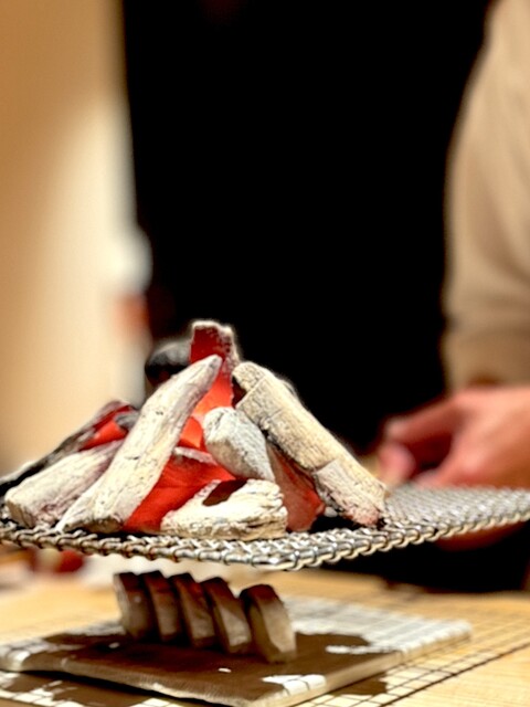 たかおか名物、炙り鮨。 いつも、タチウオが多かったんだけど、今回は大定番のサバ。 丁寧に丁寧に炭の直火で炙ります。 ハンディーバーナーの炙りとは次元が異なる旨さになる。