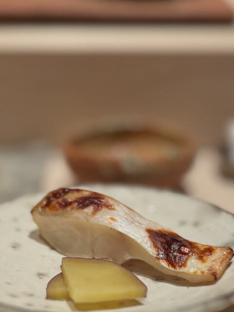 白甘鯛の焼き。 これもずっと見かける定番。 魚の出汁に漬け込んで焼いたもの。 味わいがしんなりと染み込んで、ちょっと普通の焼きとは趣がことなります。 これすら、一皮むけて旨くなってるよ?!