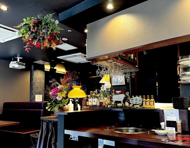 カウンター席、テーブル席で20数人ほどのキャパ。 酒もいっぱいあって、焼肉屋の風情ではありません。 平日昼間はマダムたちの女子会が多そう。 あっとういう間に満席になりました。 焼き肉のニオイすらしません。