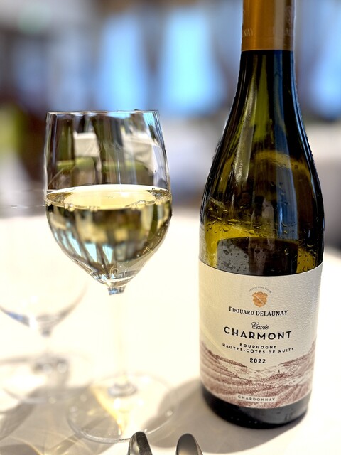 おまかせ#1 エドゥアール・ドロネーの「キュヴェ・シャルモン」ブルゴーニュ・オート・コート・ド・ニュイ・ブラン 2022 柑橘やナッティーなニュアンス。 濃いブドウ、繊細な花の香りも。